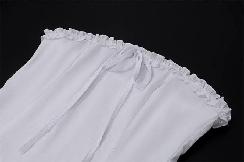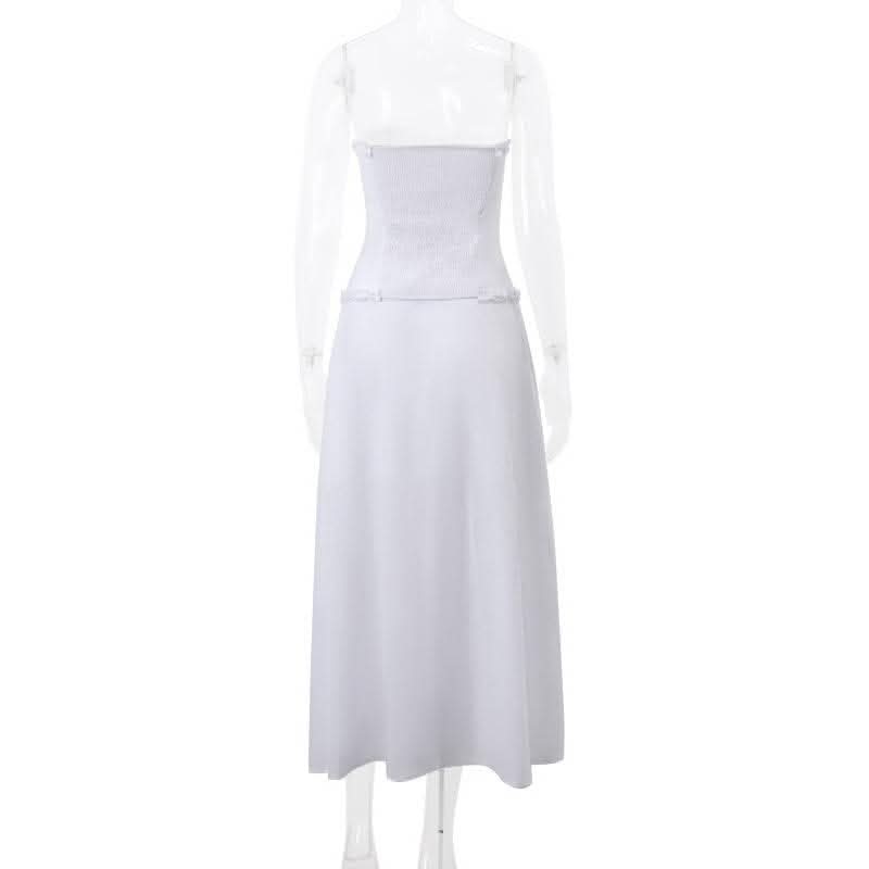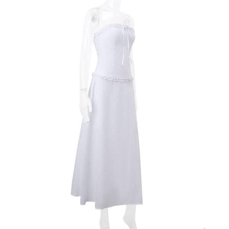 Ruffle bowknot smocked zip-up backless solid tube midi skirt set-final-sale