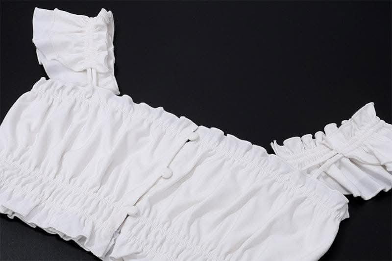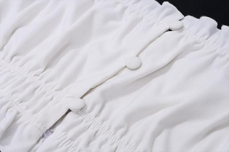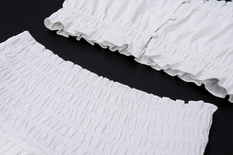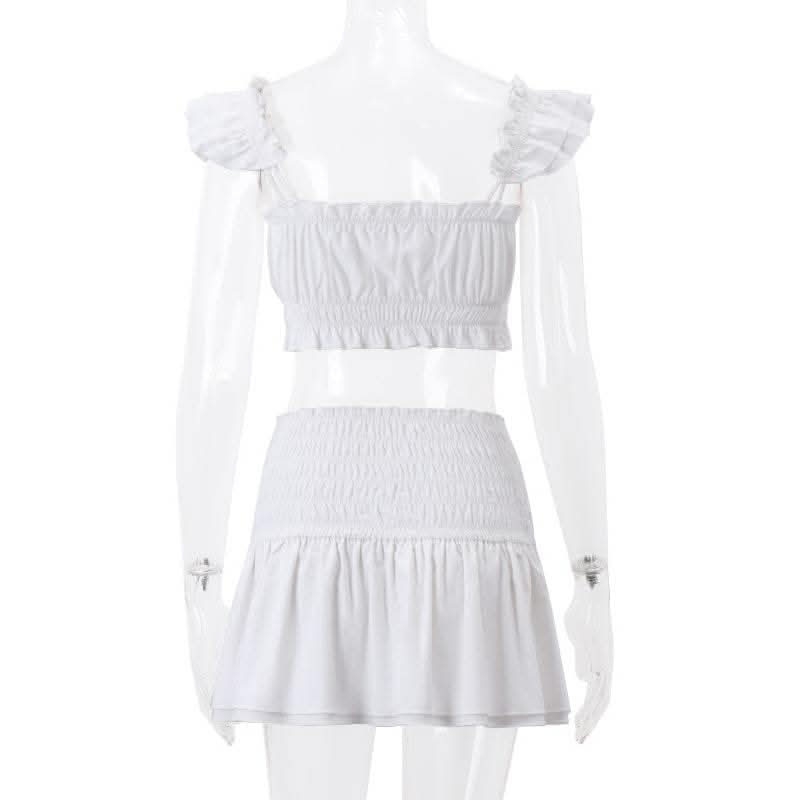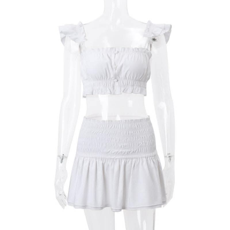 Smocked solid cap sleeve ruffle button mini skirt set-final-sale