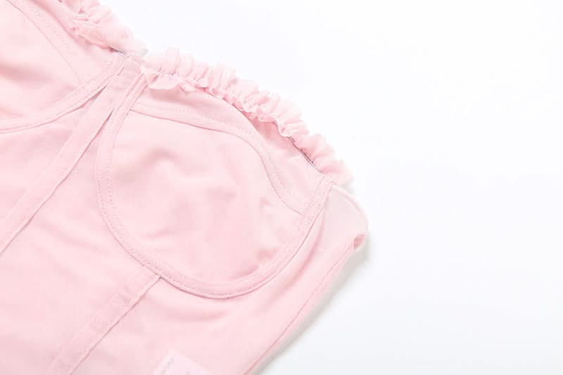 Sweetheart neck ruffle mesh backless top