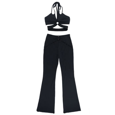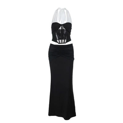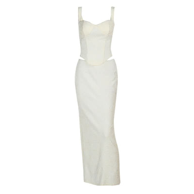 Long flared sleeve lace beaded ruffle cami midi skirt set