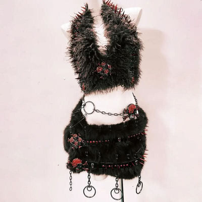 Ruffle long flared sleeve lace flower applique mini skirt set