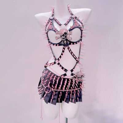 Bowknot ruffle polka dot v neck cami mini skirt set
