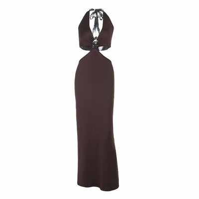 Halter slit solid backless slit maxi dress