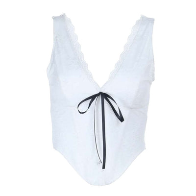 Mesh patchwork lace up backless cami top