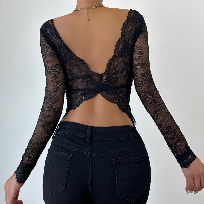 V neck long sleeve lace top | Festival Outfits Women