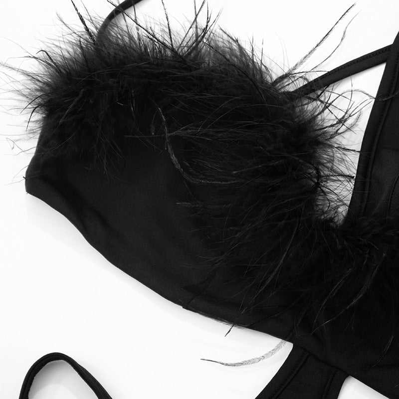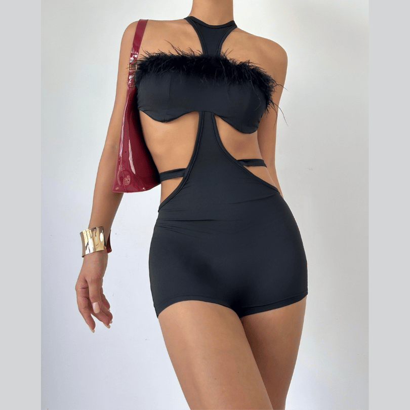 Self tie hollow out fluffy romper