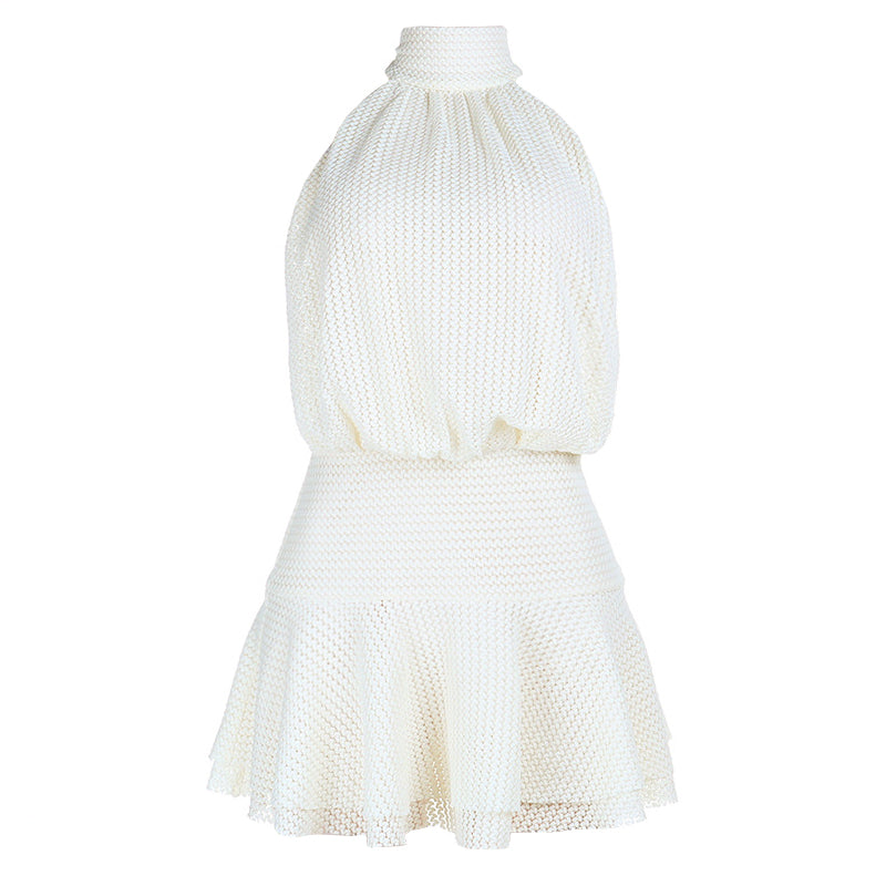 Halter self tie solid backless mini dress