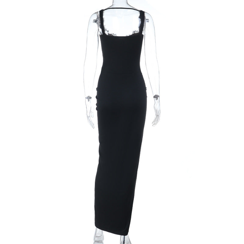 Lace hem bowknot slit ruched cami maxi dress