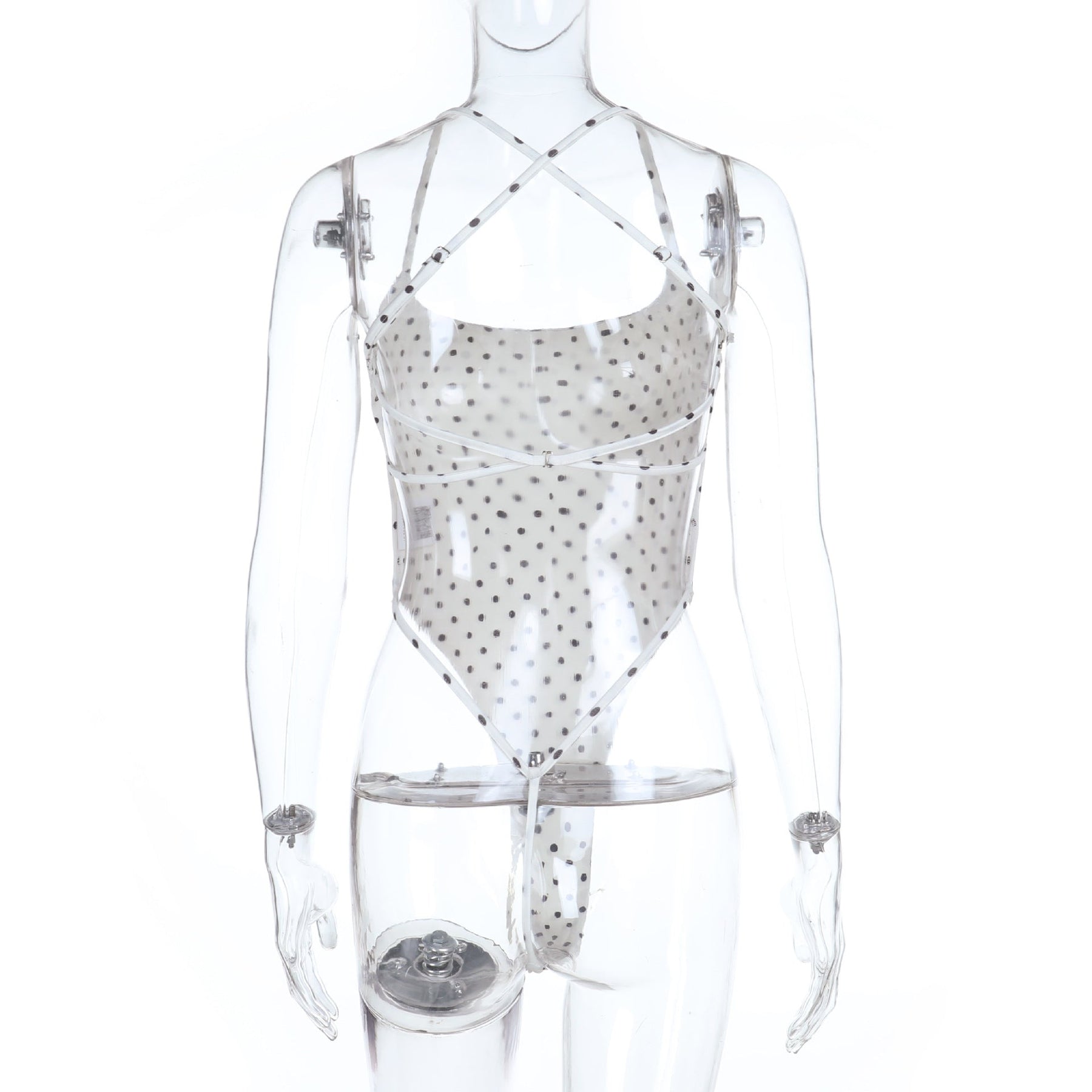 Polka dot u neck cross back backless cami bodysuit