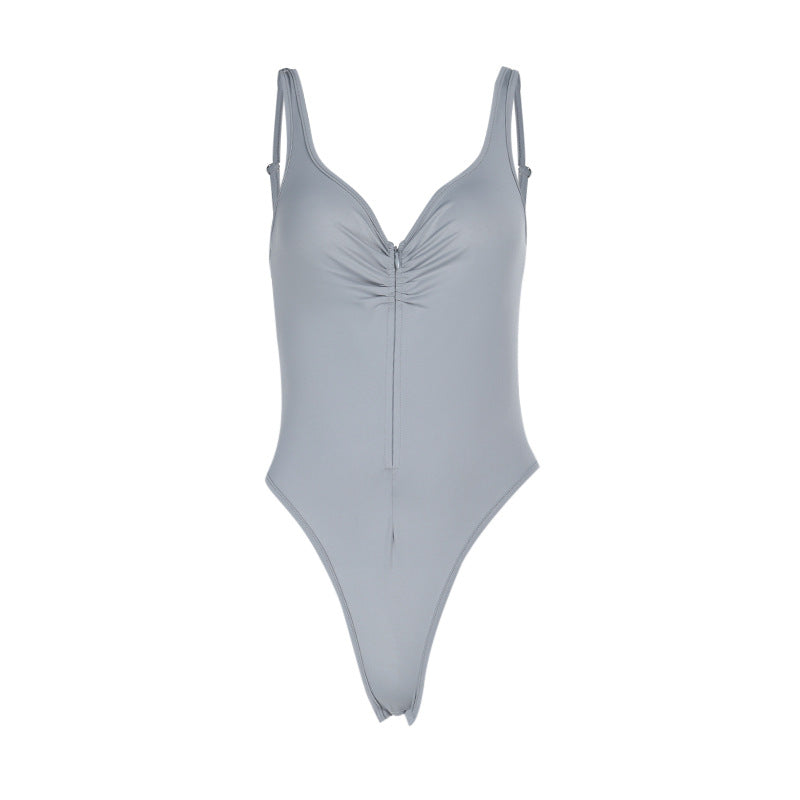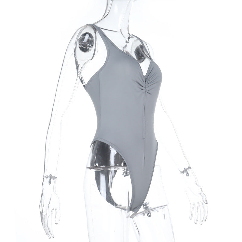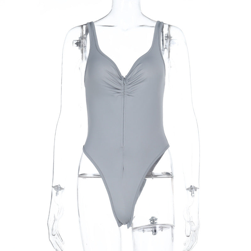 Ruched v neck zip-up button cami bodysuit