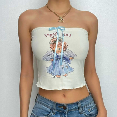 Metal chain ruched cross front self tie backless crop top