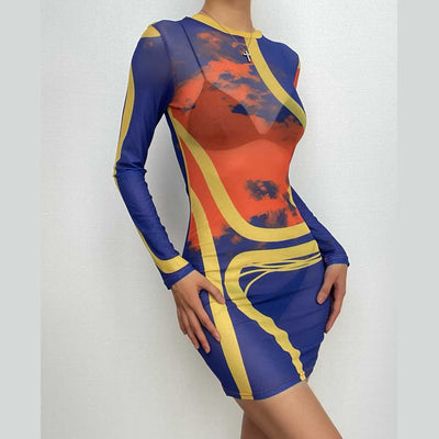 Contrast palm pattern halter backless slit mini dress