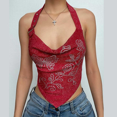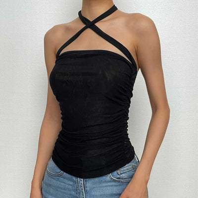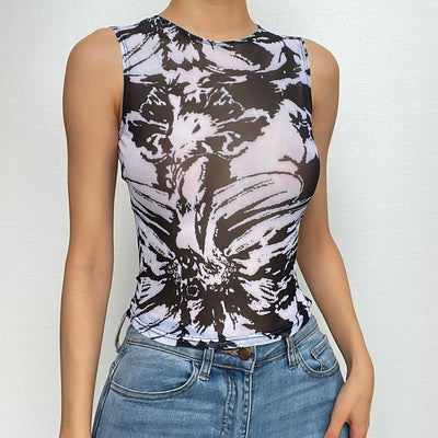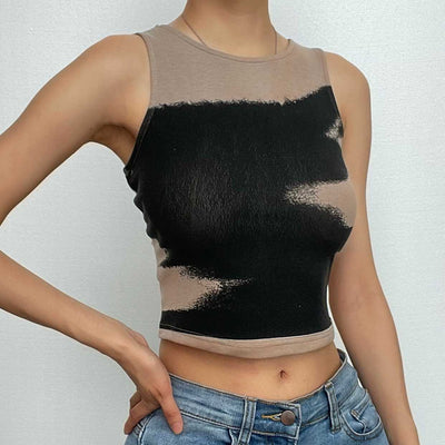 Hollow out solid sleeveless irregular crewneck mini skirt set