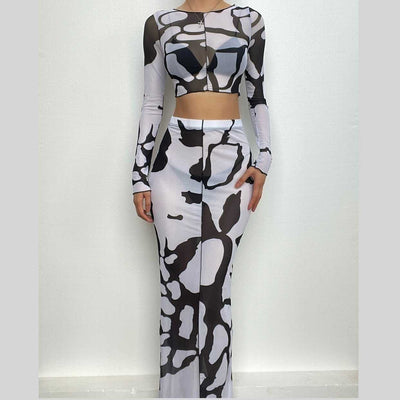 Body pattern contrast gloves self tie backless bodysuit pant set