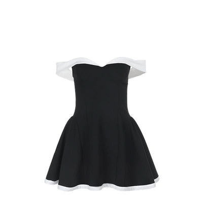 Off shoulder zip-up contrast tube mini dress