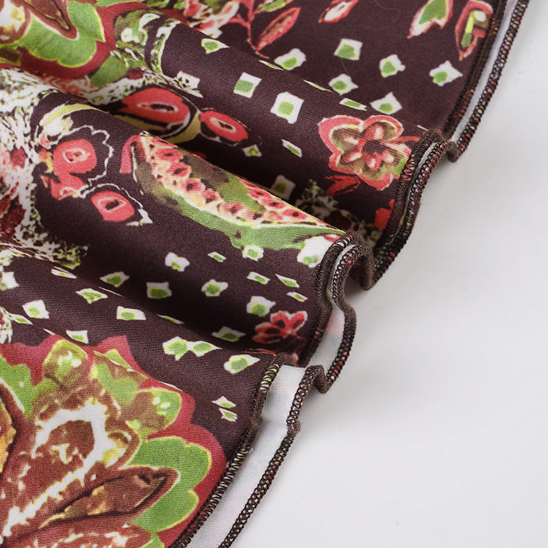 Self tie halter print beaded mini dress