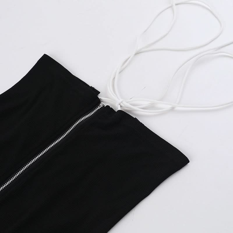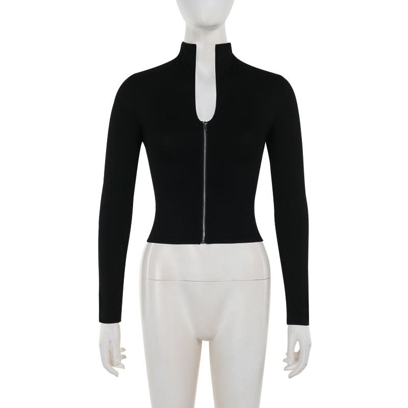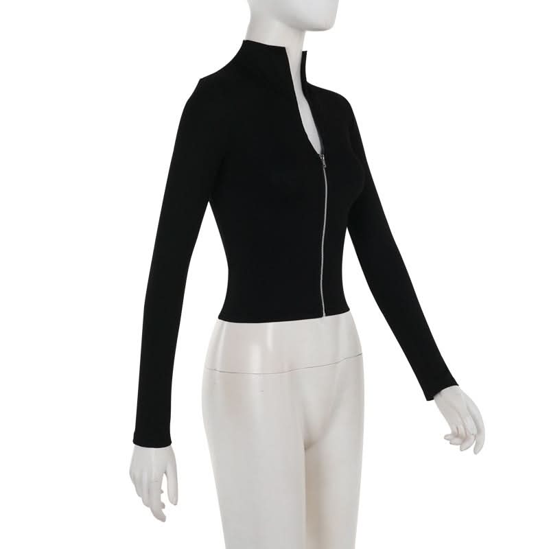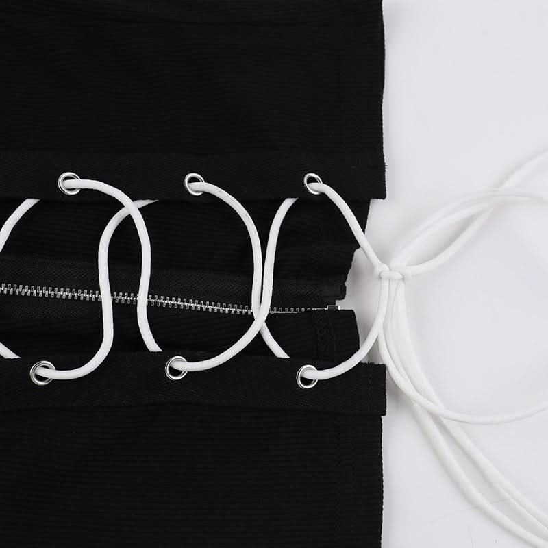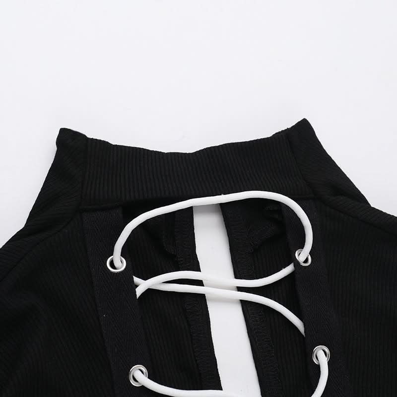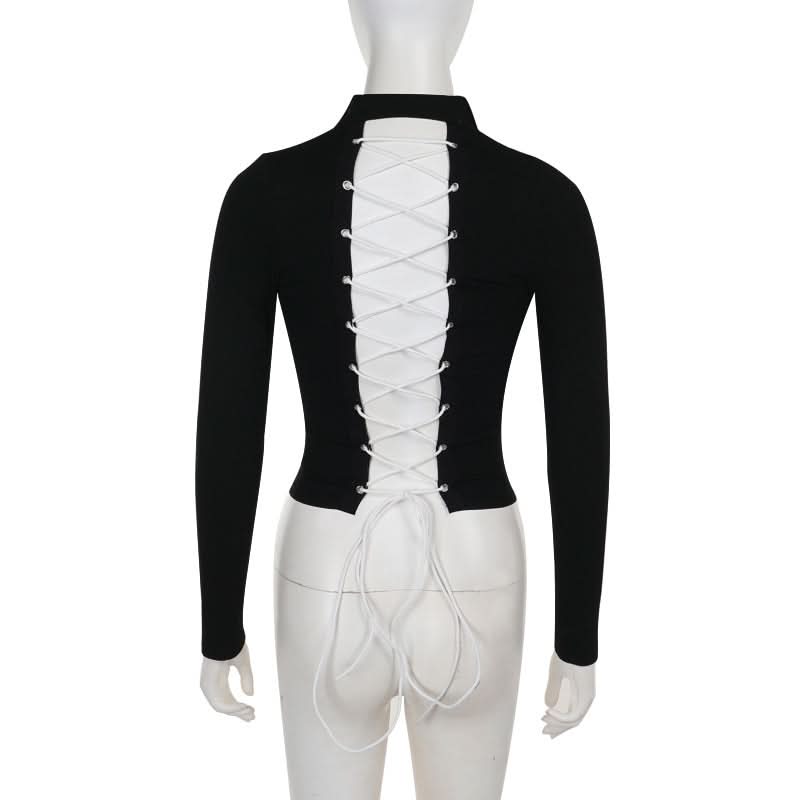 Long sleeve high neck zip-up lace up top