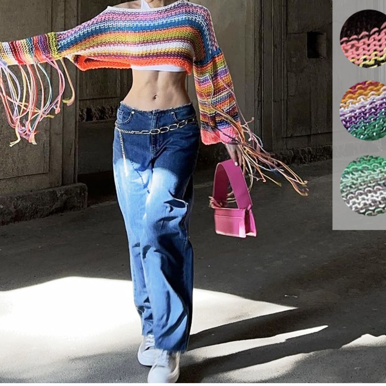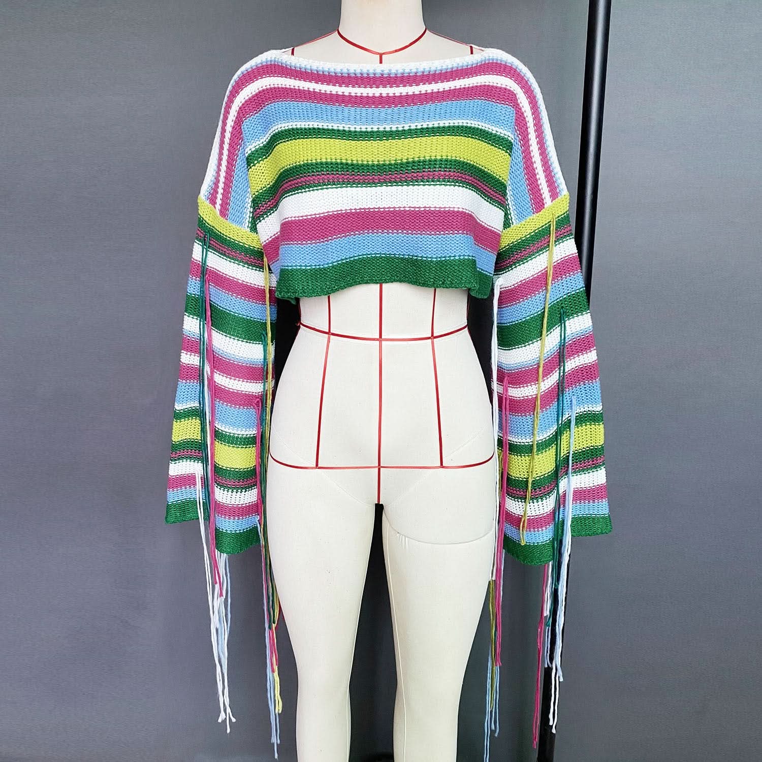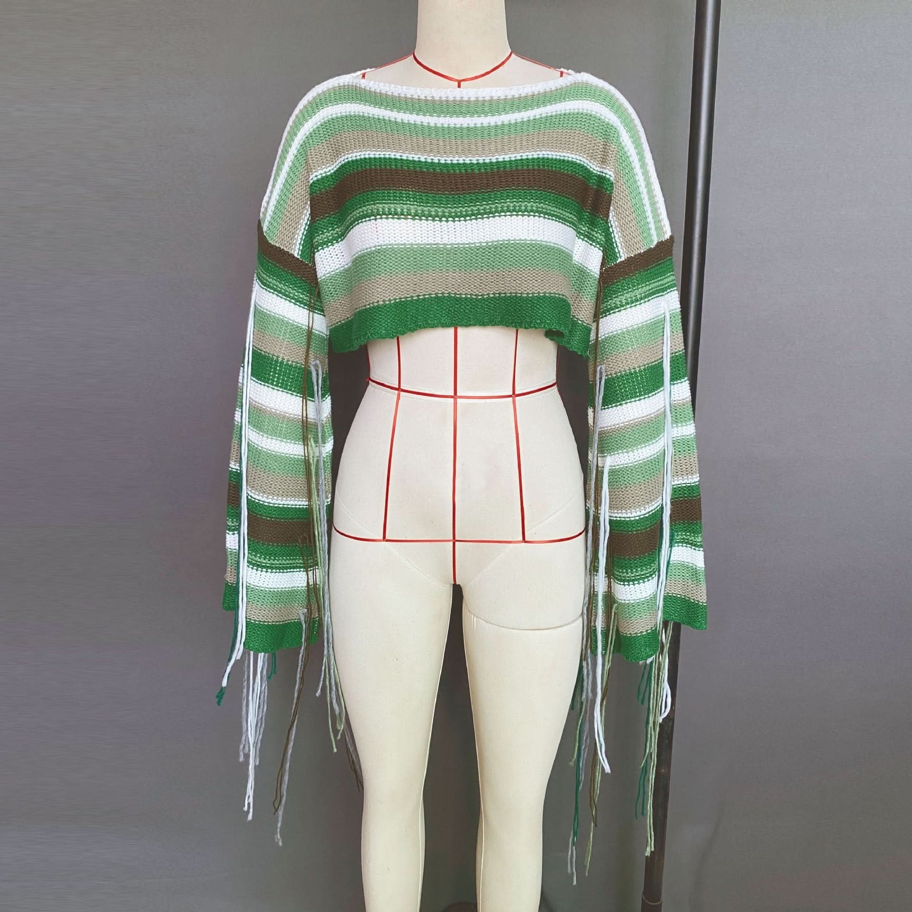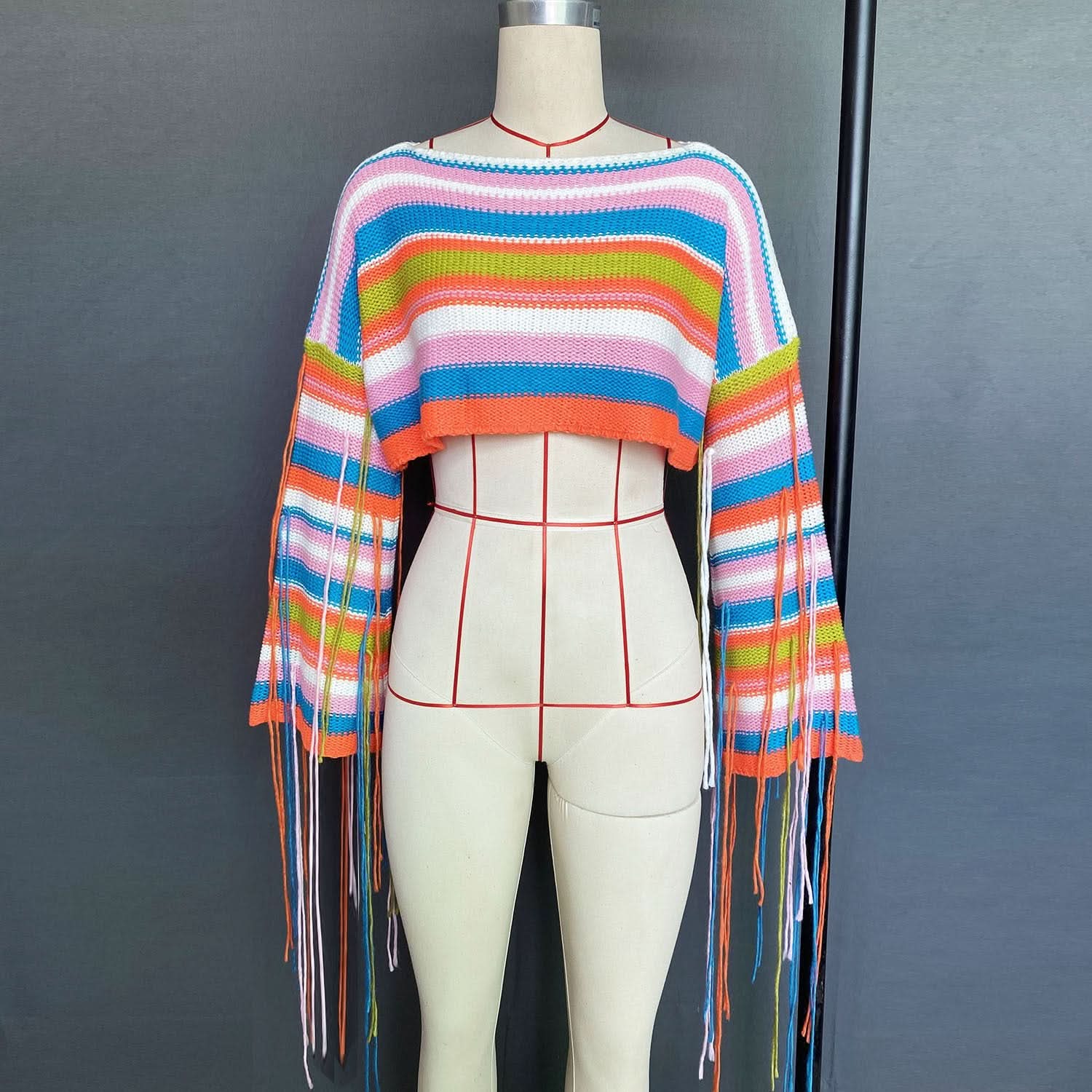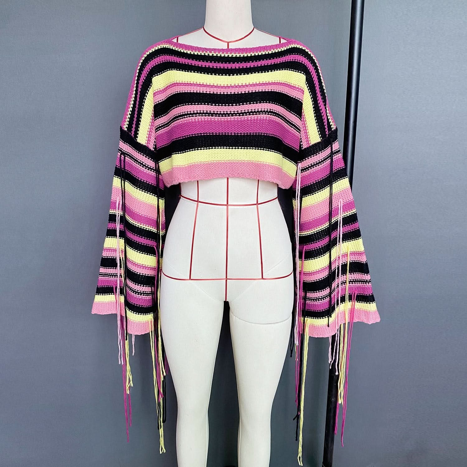 Long sleeve tassels contrast crop top