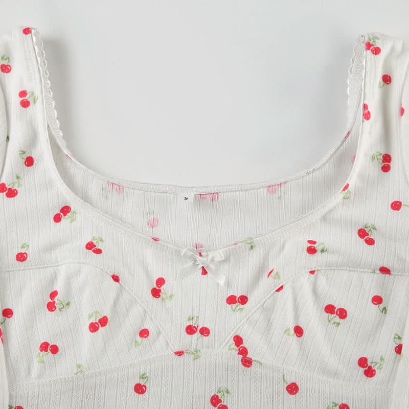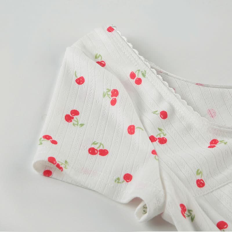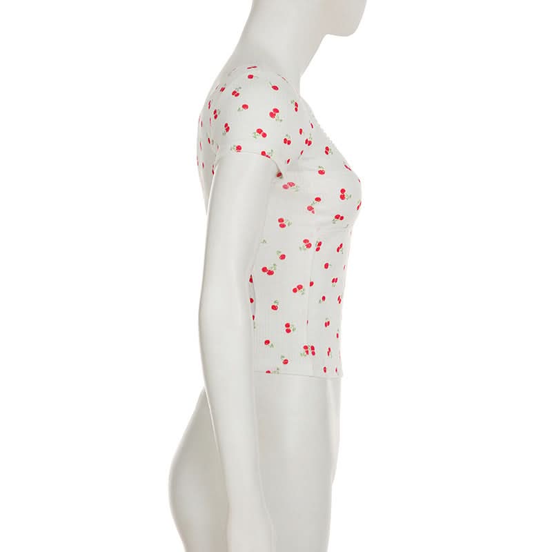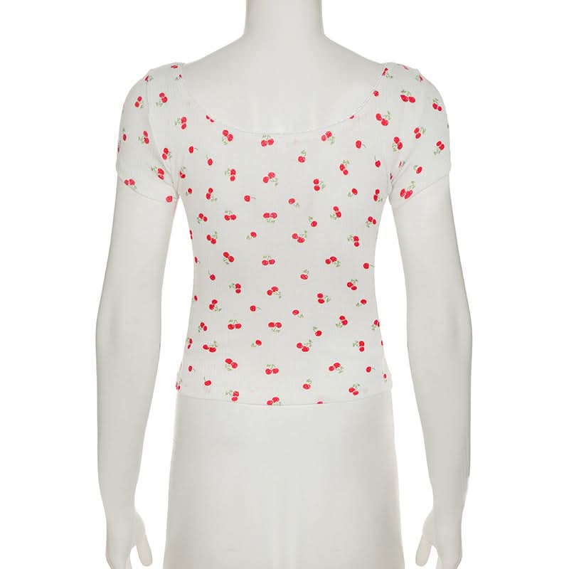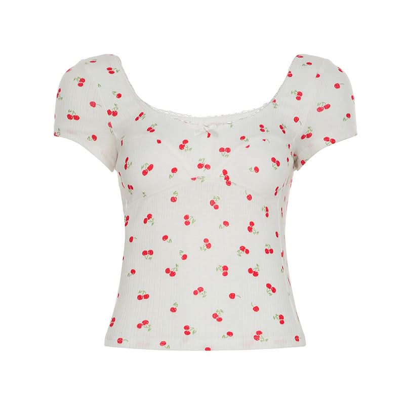Short sleeve textured cherry print top