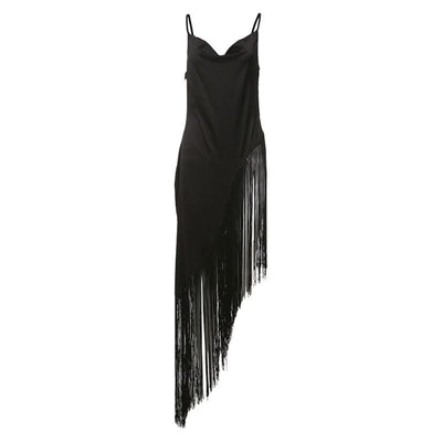 Cowl neck hollow out o ring metal chain cami cut out mini dress