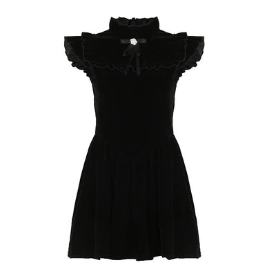 Ruffle bowknot cap sleeve zip-up velvet mini dress