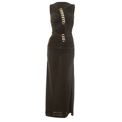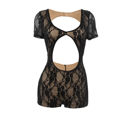 Hollow out o ring lace long sleeve self tie jumpsuit