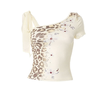 Irregular self tie short sleeve print top