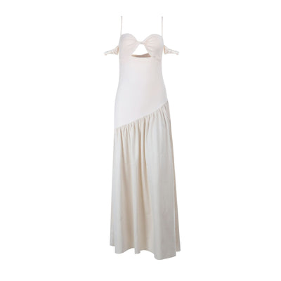 Hollow out ruched v neck cami cut out maxi dress