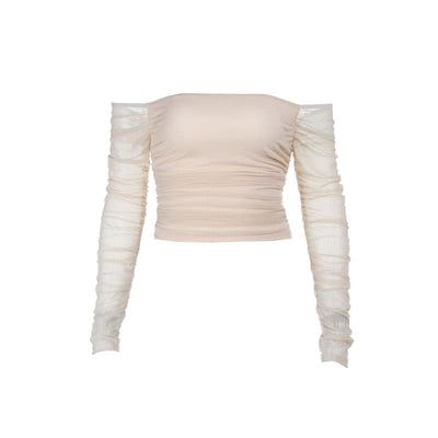 Long sleeve off shoulder ruched mesh tube top