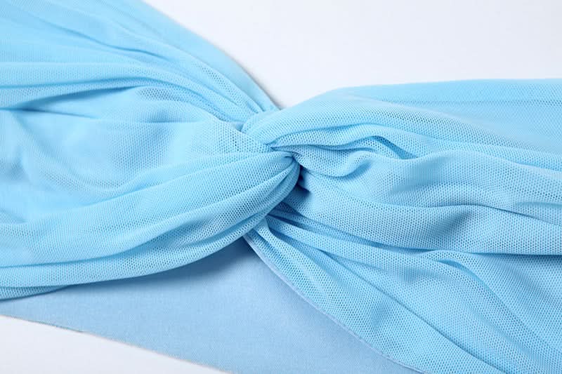Ruched knotted mesh tube maxi skirt set