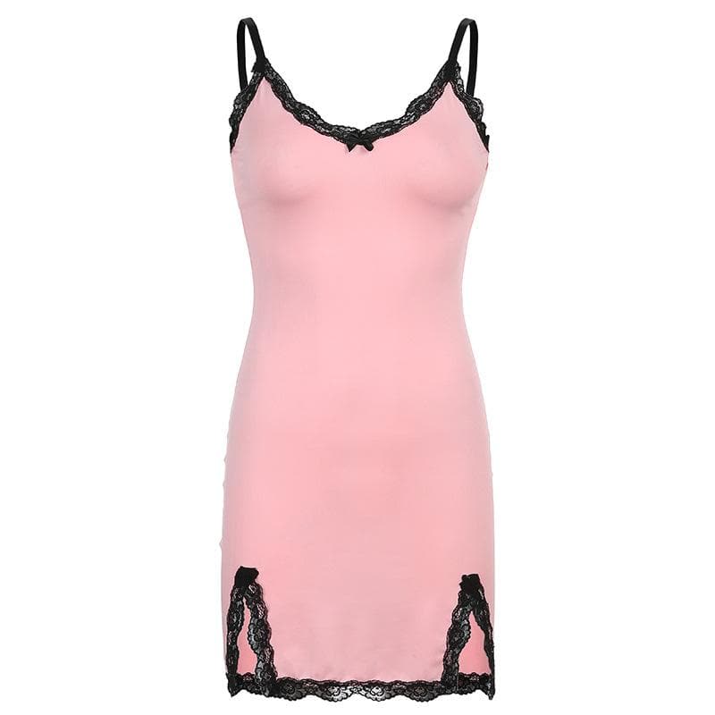 V neck slit lace hem bowknot cami mini dress | Festival Outfits Women