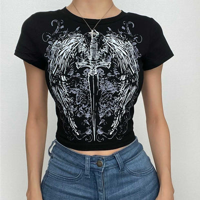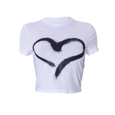 Patchwork contrast short sleeve crewneck "moody" pattern crop top