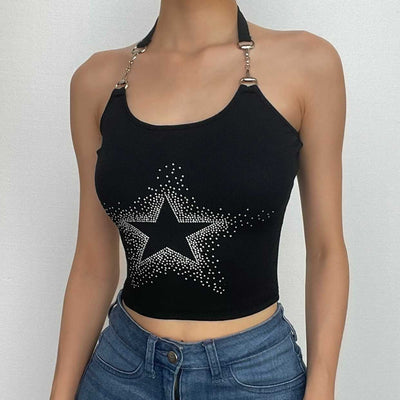 Butterfly embroidery u neck sleeveless ribbed crop top