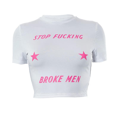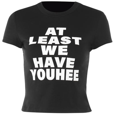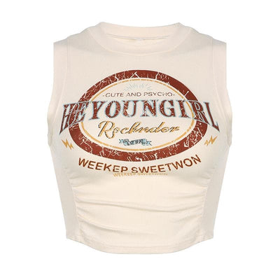 “SPOILED” embroidery contrast crewneck cap sleeve crop top