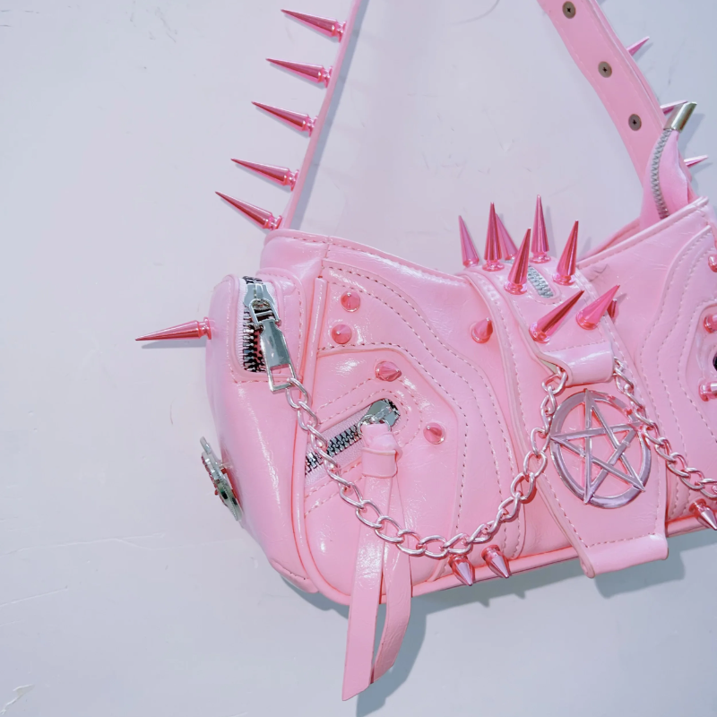 Rivet PU leather metal chain handbag