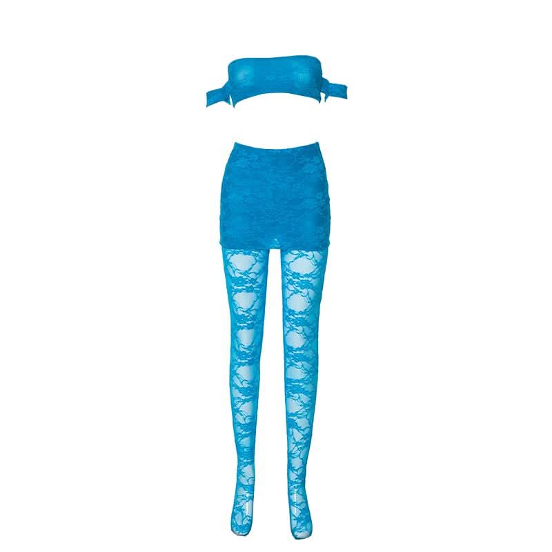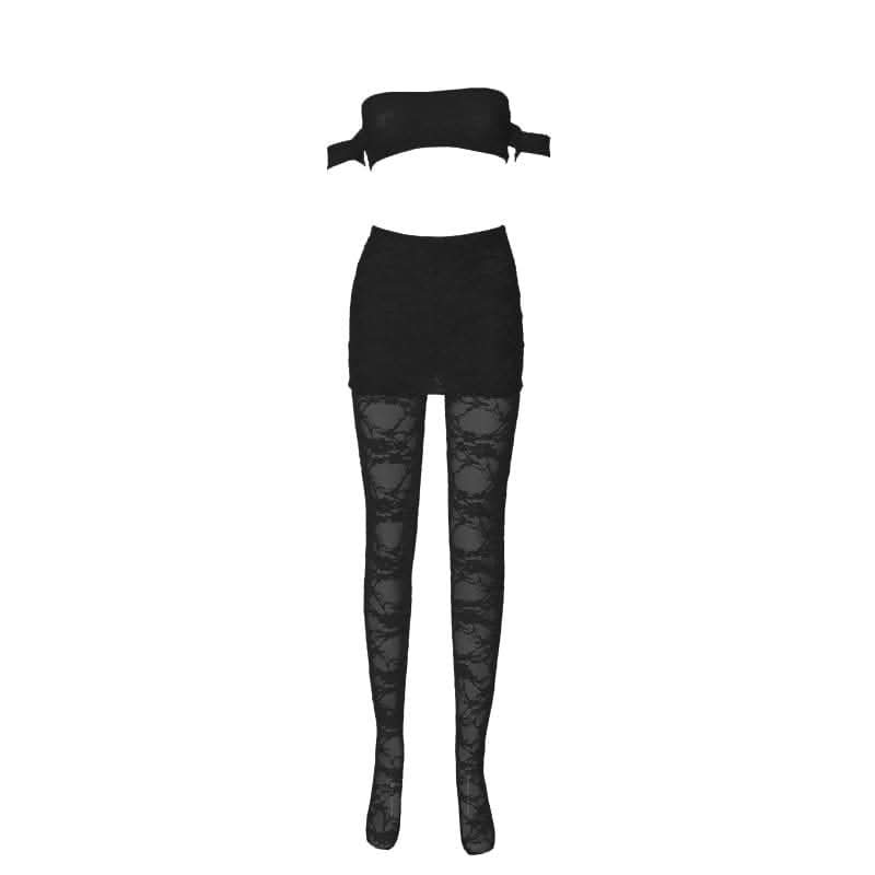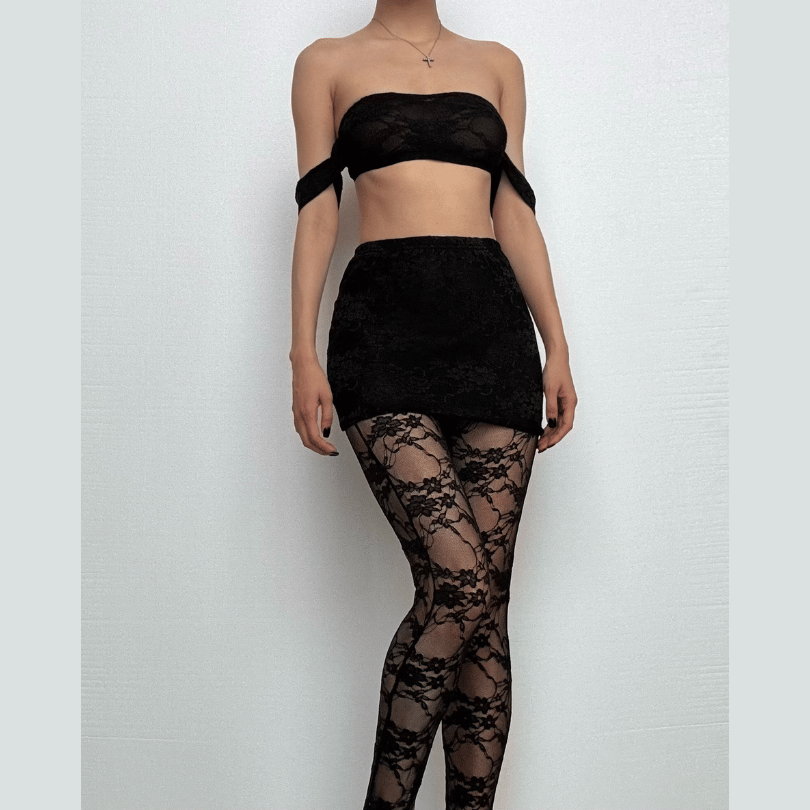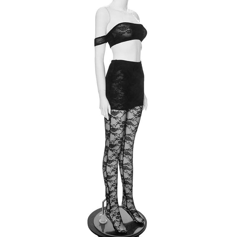 Off shoulder lace see through solid pant set-final-sale