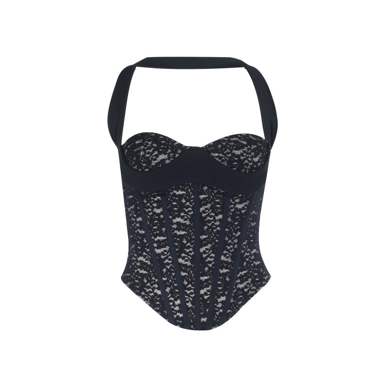 Halter lace zip-up corset backless top | Festival Outfits Women