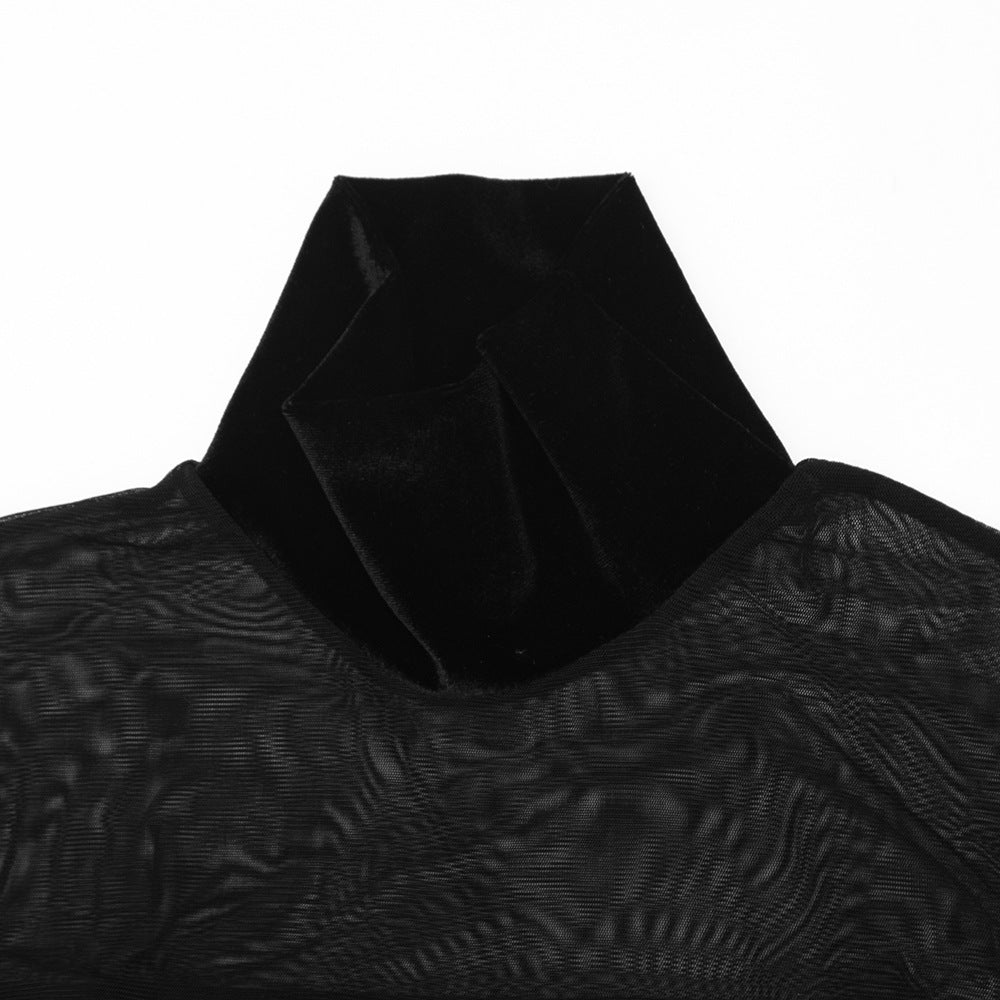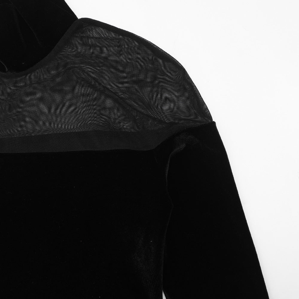High neck long sleeve mesh velvet maxi dress | Festival Outfits Women