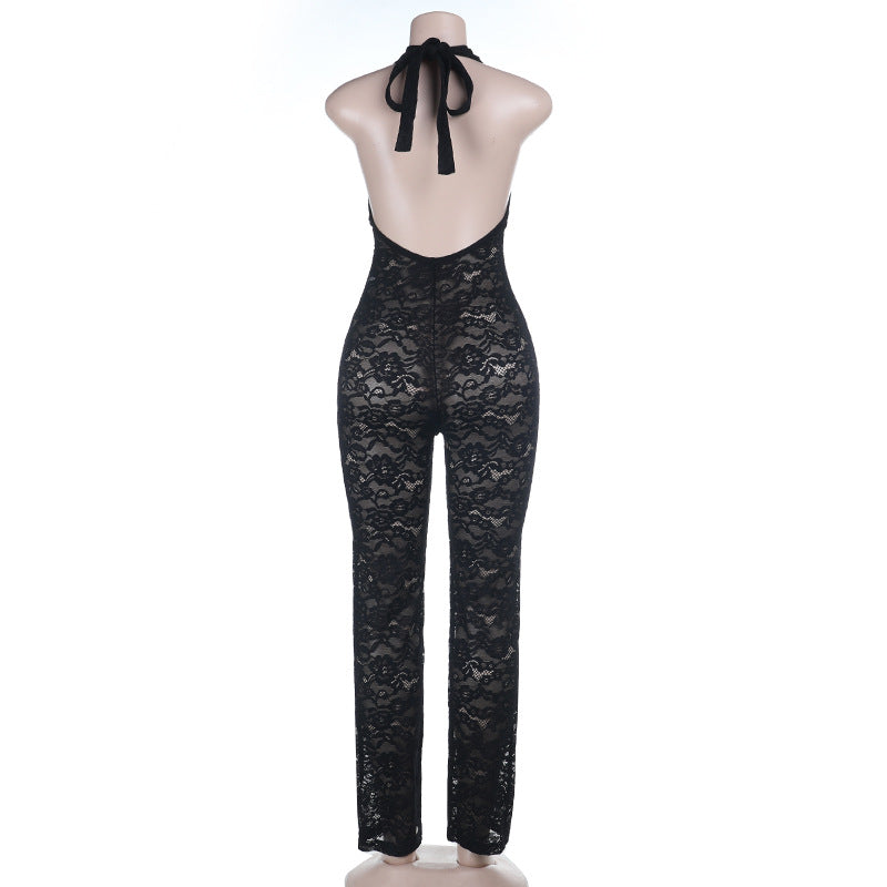 Hollow out lace halter self tie backless jumpsuit | Festival Outfits W