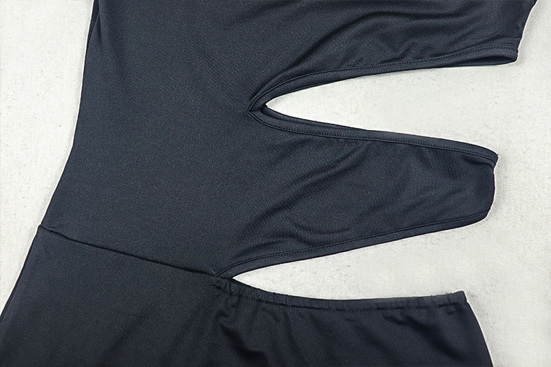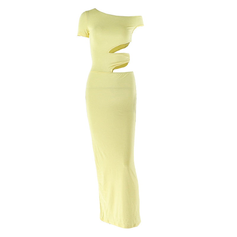 Irregular short sleeve hollow out one shoulder cut out maxi dress | Fe