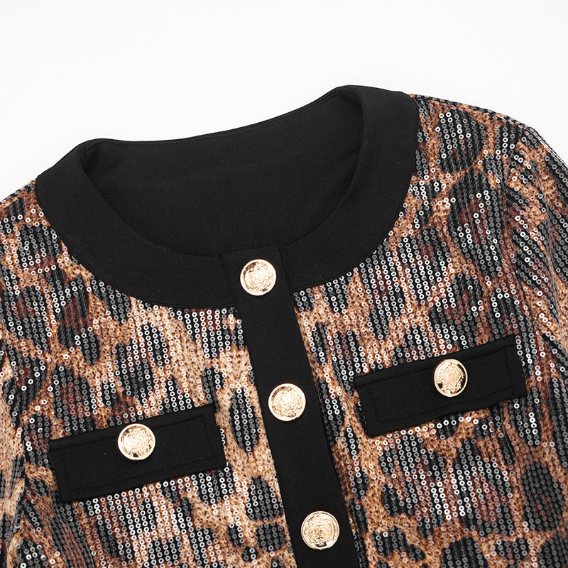 Leopard print glitter crewneck long sleeve pant set | Festival Outfits Women