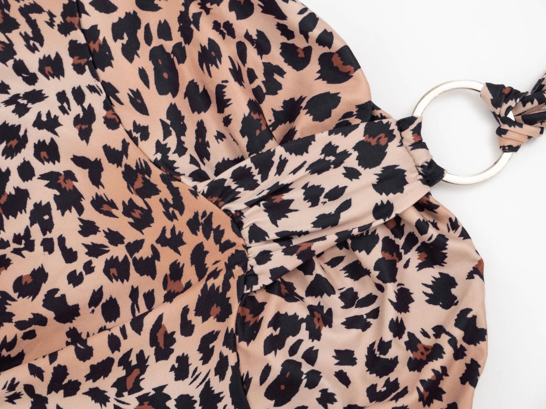 Leopard print halter self tie o ring mini dress | Festival Outfits Women | Leopard Print Mini Dress