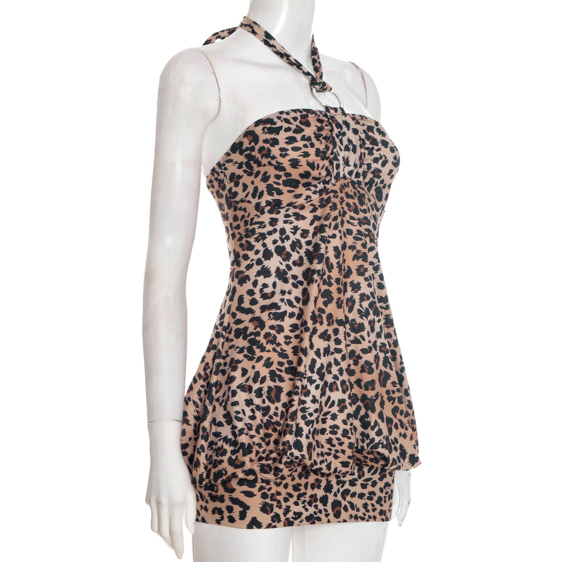 Leopard print halter self tie o ring mini dress | Festival Outfits Wom
