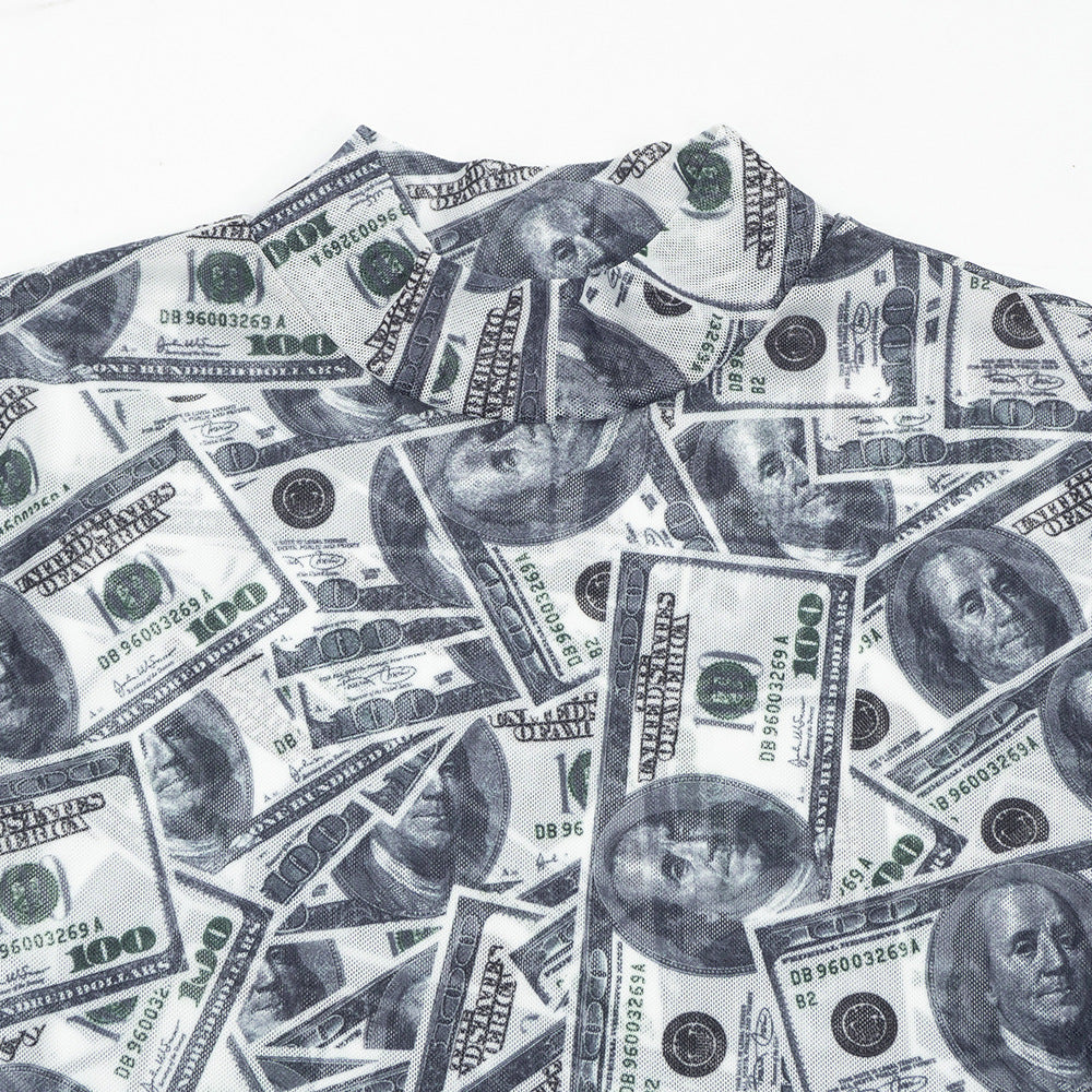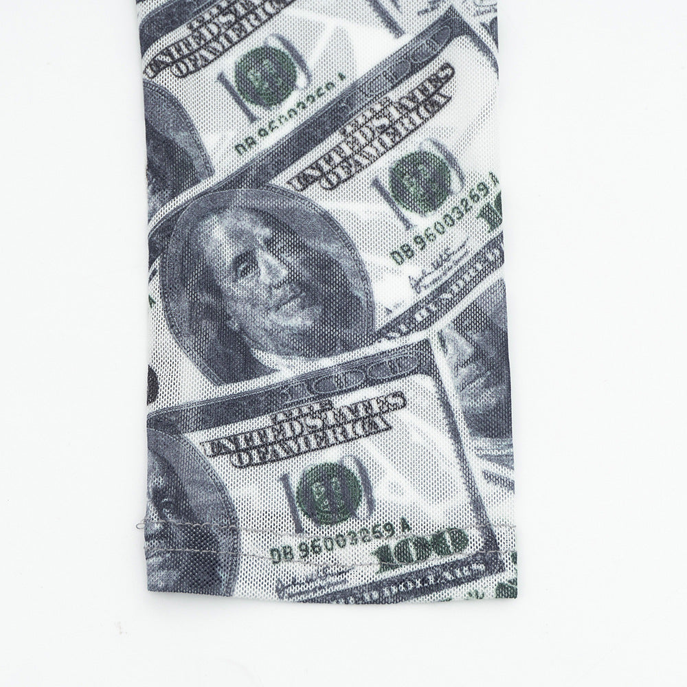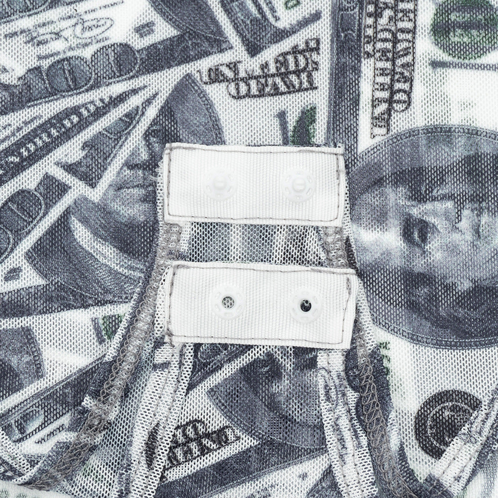 Sheer mesh US dollar print long sleeve bodysuit | Festival Outfits Women