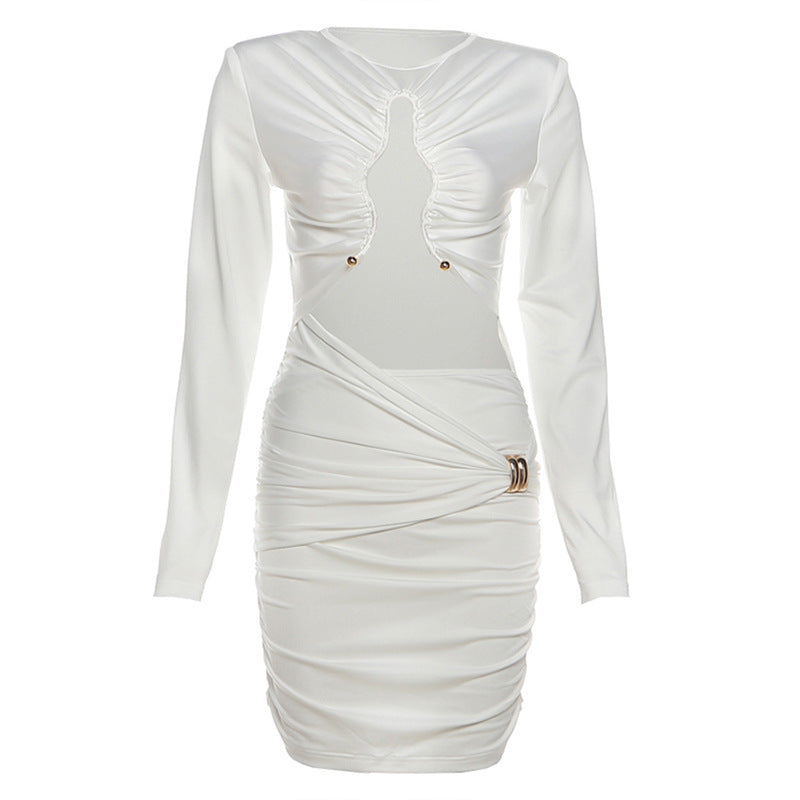 Long sleeve hollow out ruched crewneck cut out mini dress | Festival Outfits Women
