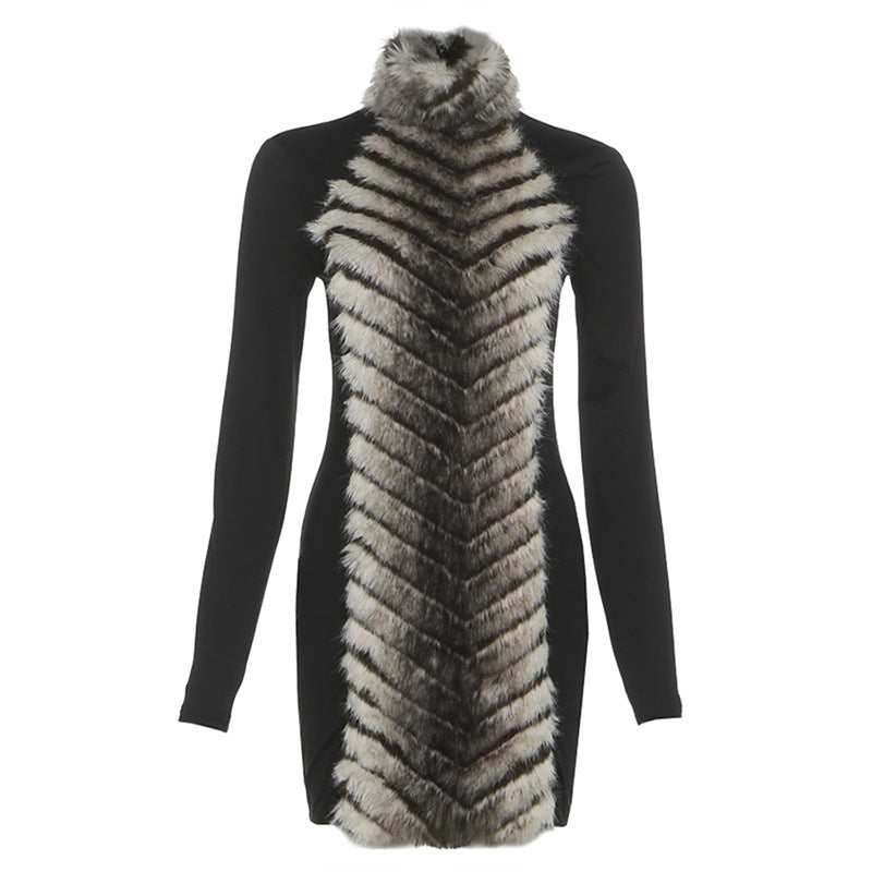 High neck fluffy long sleeve zip-up mini dress | Festival Outfits Women