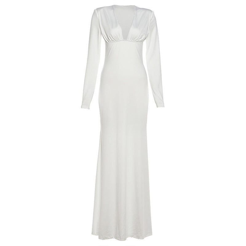 Long sleeve v neck low cut solid maxi dress | Festival Outfits Women