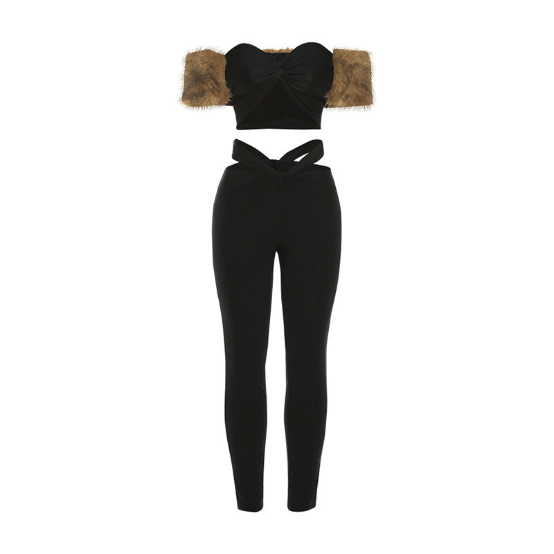 Fluffy hollow out sweetheart neck low rise pant set | Festival Outfits Women