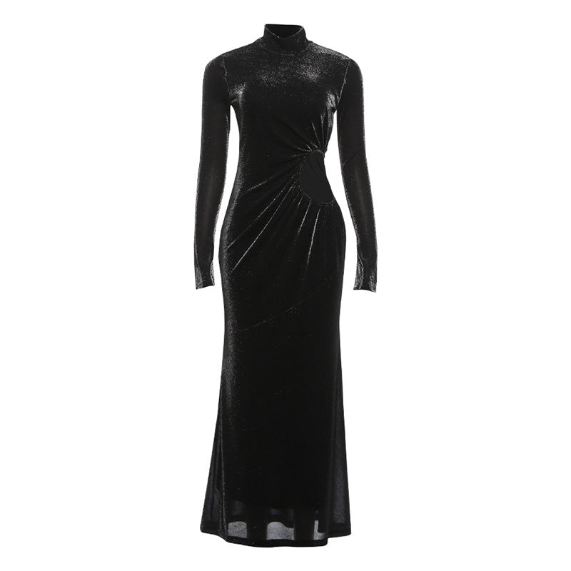 Hollow out o ring long sleeve gloves cut out maxi dress | Festival Outfits Women