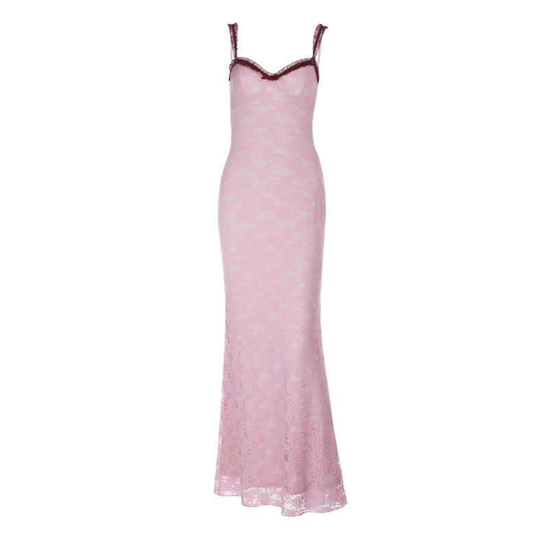 Bowknot lace ruffle v neck cami maxi dress | Festival Outfits Women